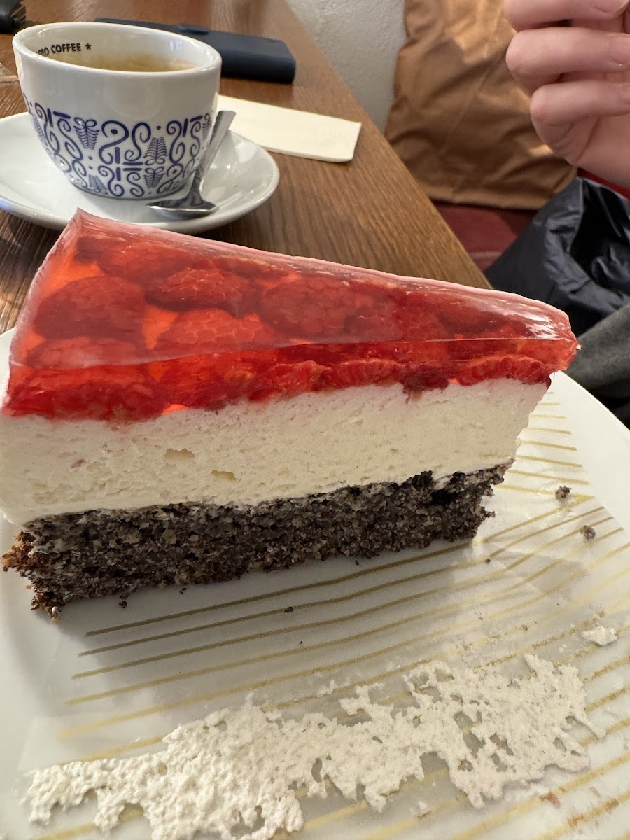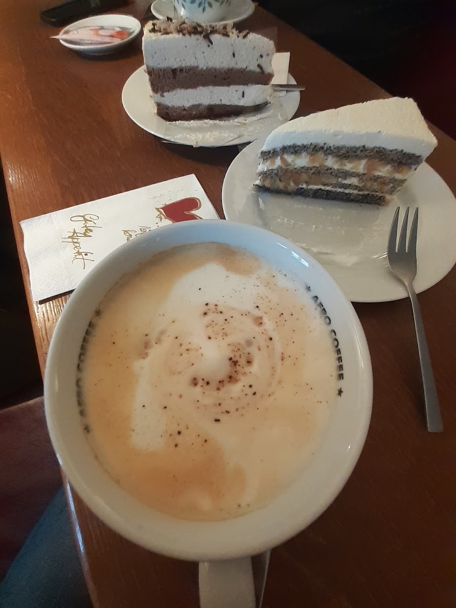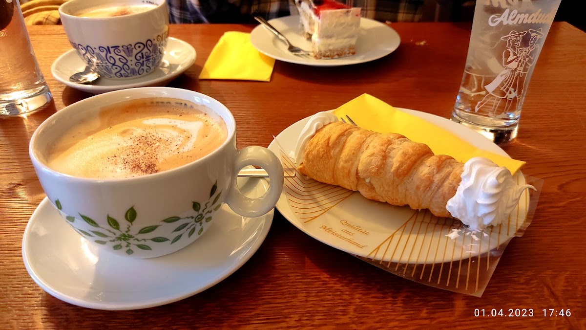 Auf unserer Heimreise kamen wir hier vorbei und haben uns auf Google für einen Kaffe verlassen. Das war gut so . Die Sacher Torte und der Mohnkäsekuchen mit Himbeeren waren einfach nur ein Gedicht und sehr lecker. Dazu gab es einen Cappuccino und einen normalen Kaffee. Eine sehr zuvorkommende, nette und freundliche Bedienung hat uns bedient. Von Ihr bekamen wir auch einen Tip, wo wir Abends essen gehen können - Danke dafür. Zum Preis ist zu sagen, das wir knapp 15 € ausgehen haben, was absolut angemessen war